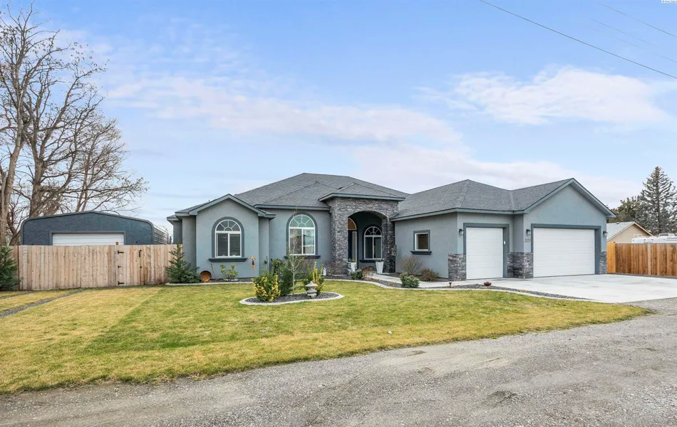 MLS# 281098 Nestled in West Pasco, this exceptional home surpasses all expectations, and includes a 3-car garage + shop, and a tranquil yet convenient location, all on a generous half-acre lot! Encompassing 3225 sq ft on 1-level, this residence offers 5 bedrooms, a den, and 3.5 bathrooms. Step inside to a welcoming entryway that leads to a spacious great room illuminated by high ceilings and an abundance of natural light. The chef's kitchen is a vision of elegance, featuring white cabinetry, quartz countertops, a tiled backsplash, an oversized island, a cooktop with a pot filler, a full refrigerator/freezer combo, and a large pantry. Open to the kitchen, the dining room offers additional built-in cabinets for ample storage and serves as a substantial sideboard, the perfect space to host guests. The primary suite is a luxurious retreat with access to the patio for your morning coffee, 2 custom-sized closets, and a private bathroom that includes a dual sink vanity, quartz counters, a large soaking tub, and a sizable custom tiled shower. Additionally, there are 4 more generously sized bedrooms, one with an ensuite bath, a den/study, and a spacious laundry room with built-in cabinetry and a folding counter. Outside, a large screen-enclosed patio area with fans and Trex-style decking provides the perfect setting for relaxation, parties, and gatherings. The property also features an attached 3-car garage and a detached shop, offering ample space for all your vehicles, toys, and more. To top it off, this remarkable home comes complete with a comprehensive home inspection and a 1-year home warranty, ensuring peace of mind for the new homeowners. Contact your favorite realtor today for a private showing!