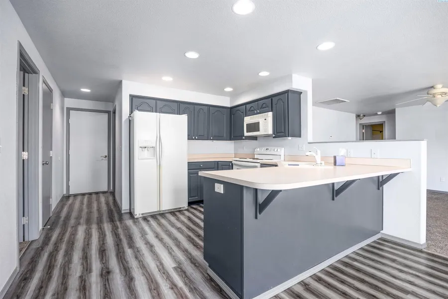 MLS# 285556 Welcome to this inviting single-level home situated in the Island Estates neighborhood of West Pasco, providing the perfect option for first-time homebuyers or savvy investors looking for a rental property. Upon entering, you'll be greeted by an open floor plan spanning 1436 sq ft, with 4 bedrooms and 2 bathrooms. The living room offers easy access to the covered patio, providing a seamless indoor-outdoor living experience. The kitchen boasts a breakfast bar, pantry, vinyl floors, and ample space for meal preparation. Adjacent to the kitchen, the dining area is bathed in natural light from a bay window, perfect for enjoying morning coffee. The primary bedroom suite includes a spacious closet and private bathroom, while the fourth bedroom can serve as a versatile home office. The 2-car garage provides storage and workspace, with additional off-street parking available along the side of the home. Outside, the fenced backyard beckons with gated access, a trellis-covered patio for outdoor relaxation, and plenty of space for children and pets to play. This home is conveniently located near a neighborhood park, schools, shopping, various dining options, and offers easy highway access for commuters. Experience the ideal combination of comfort, practicality, and convenience in this delightful West Pasco residence.