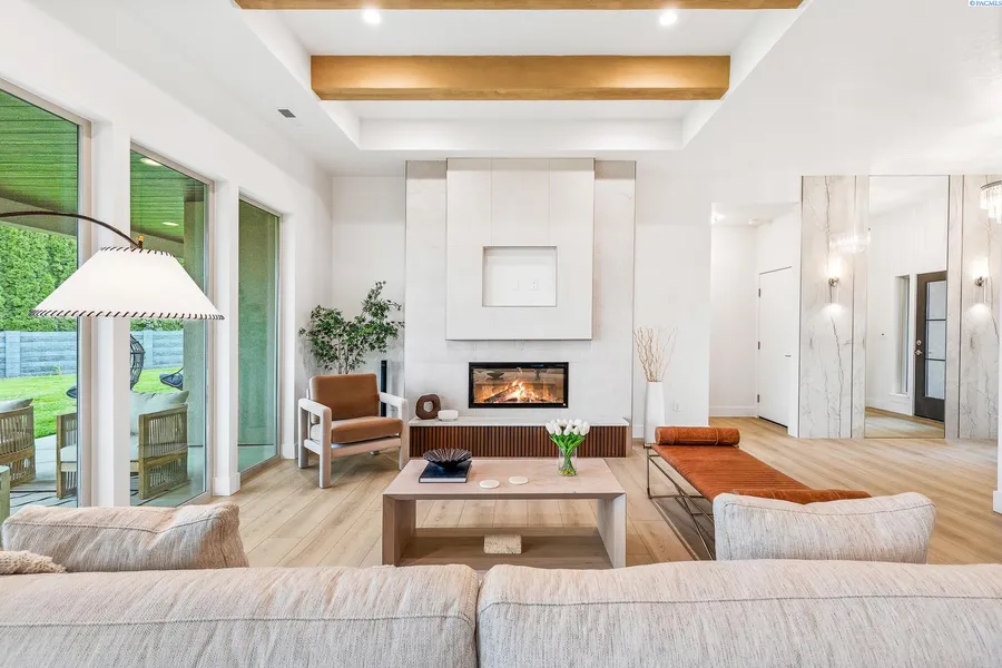 MLS# 287338 Welcome Home to Your Pro Made Homes Parade Home at Magnolia Heights in West Pasco! Experience refined living in this stunning new home that blends modern architecture with organic elegance. Thoughtfully designed to elevate everyday life, this residence offers an exceptional combination of style, comfort, and functionality. Step inside to discover expansive floor-to-ceiling windows that flood the interior with natural light and frame the peaceful views of the spacious, landscaped yard. A dramatic accent wall, reminiscent of natural stone is softly illuminated by integrated LED lighting, brings warmth and texture to the open living area. The entryway makes a bold statement with elegant tile walls and a dramatic floor-to-ceiling mirror, enhancing the home's sense of space, light, and sophistication. The primary suite is a peaceful sanctuary where luxury meets nature. Large sliding glass doors create a seamless indoor-outdoor connection and provide serene views of the lush backyard. A sophisticated textured accent wall and modern fireplace add depth and coziness, while a built-in wet bar and direct access to the spa-inspired ensuite bathroom elevate the space into your personal haven of relaxation and style. Set on a fully fenced approximate Ž acre lot, this property offers both privacy and endless potential for outdoor living. Surrounded by mature landscaping, the backyard is the perfect canvas for your dreams. Whether it's a pool, garden oasis, or custom play area. This rare combination of space, seclusion, and opportunity is all yours. All of this with a 3 car garage that includes an extra tall garage bay for added storage benefits. We invite you to visit our homes and experience what sets us apart. At Pro Made Homes, we deliver Exceptional Value and Uncompromised Quality.