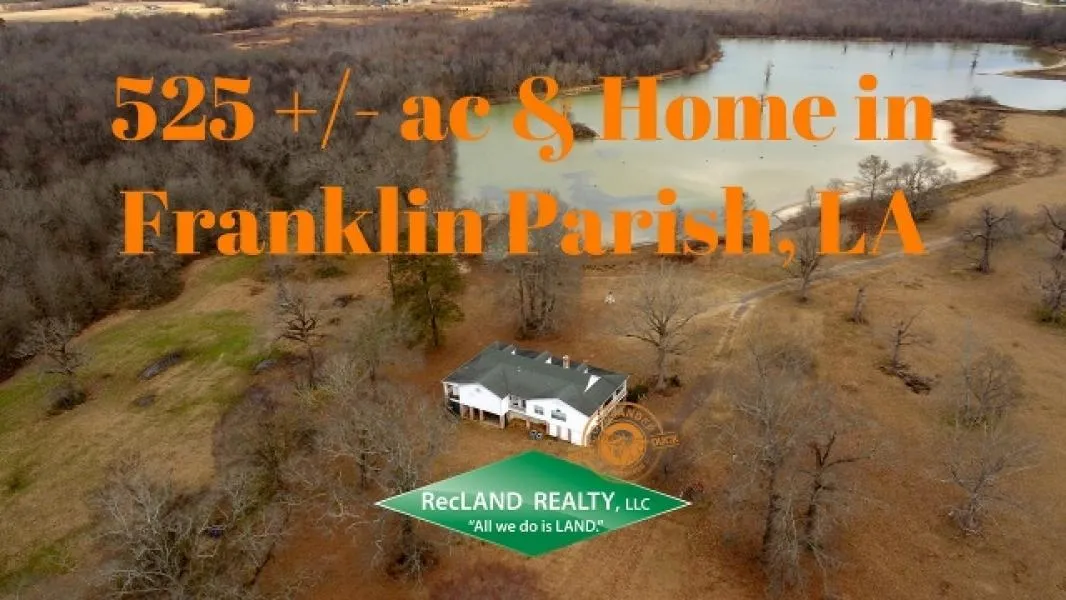 525 +/- acres Recreational Tract with Lake & Large Home near Winnsboro in Franklin Parish, LA