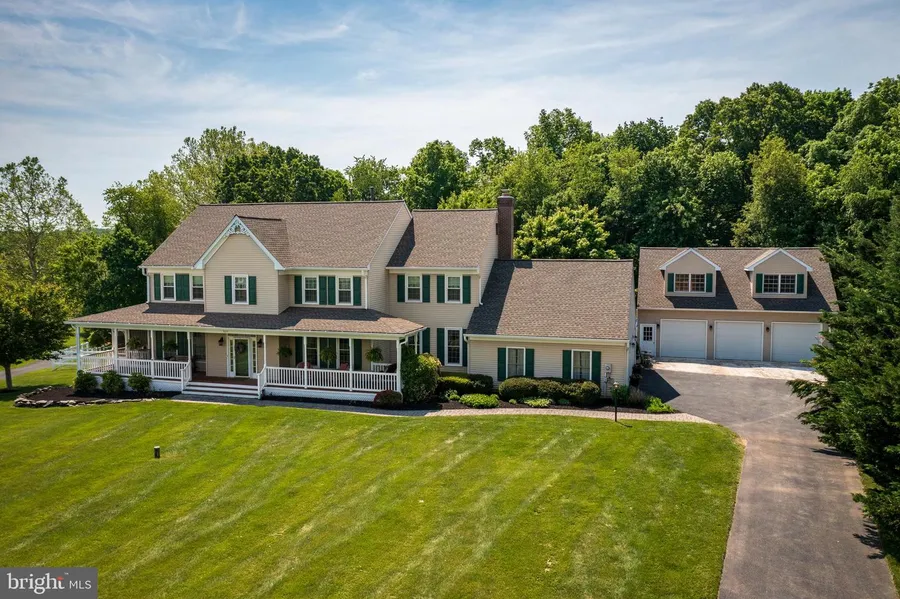 Picture perfect setting, This stunning property is truly a special place that has so much to offer situated on the most perfect picturesque 2.5 acre lot. Amazing features include a private in-ground gunite pool, a detached 3 car oversized garage with complete apartment on upper level of outbuilding with many possible uses that includes a kitchenette, full bath, living room, bedroom and deck. Recently remodeled kitchen with great attention to detail. Beautiful wrap-around porch, finished basement, multiple decks, a patio and so much more. Property has a total of 6 bedrooms, 6 garage spaces and 5.5 baths including detached garage. Main level office with private full bath can serve as a bedroom or suit any of your needs. 2 fireplaces, bright and spacious owner's suite with sitting room, luxury bath and enormous walk-in closet and so much more. Recently replaced roof and decking on main hous...