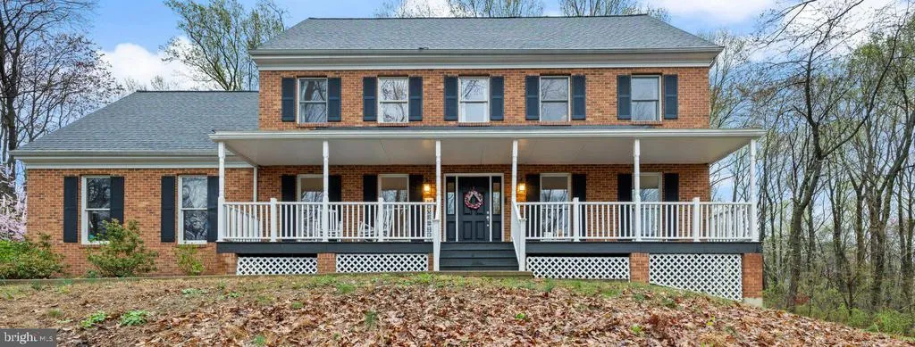 Tucked at the end of a tree-lined drive, this beautifully updated colonial home offers a peaceful retreat with sweeping hilltop views. From the covered front porch, take in the tranquility of the surrounding landscape.Step inside to a warm and welcoming main level featuring hardwood floors and a smart, flowing layout. The updated kitchen is a standout, featuring crisp white cabinetry, granite countertops, a stylish tile backsplash, and stainless appliances. A spacious breakfast area, complete with a floor-to-ceiling bay window, frames panoramic views of the expansive backyard.Whether hosting formal dinners in the elegant dining room or casual gatherings in the open-concept great room, this home was made for entertaining. The family and living rooms have been thoughtfully opened up to create a bright, connected space anchored by a cozy brick fireplace. Wide sliding doors extend the living space outdoors to the rear deck‹”perfect for relaxing or hosting under the stars.Upstairs, the spacious primary suite serves as a true retreat, offering a large, updated en-suite bath with dual vanities and a glass-enclosed shower. A hallway with two walk-in closets leads to a generous home office or sitting room‹”ideal for working or studying from home. Three additional bedrooms and a fully renovated hall bath complete the upper level.The finished lower level adds even more versatile living space, with a large rec room, a third full bath, and a flexible bonus room that's perfect as a second office, fitness room, playroom, or creative studio. You'll also find a dedicated storage area, laundry space, and walkout access to the yard.Outside, the partially wooded lot spans over 3 acres and features a large shed, open play areas with included equipment, chicken coop, and plenty of room to explore. Practical updates over the last five to ten years include the roof (5 years old), trim, and gutters with guards, a repaved driveway, well pump and water conditioning system, HVAC unit, and a replacement chimney liner.With a side-load two-car garage and an oversized paved driveway that easily fits six or more vehicles, there's room for everyone. Just minutes from Mount Airy's best dining and shopping, this home perfectly blends wooded privacy with everyday convenience.