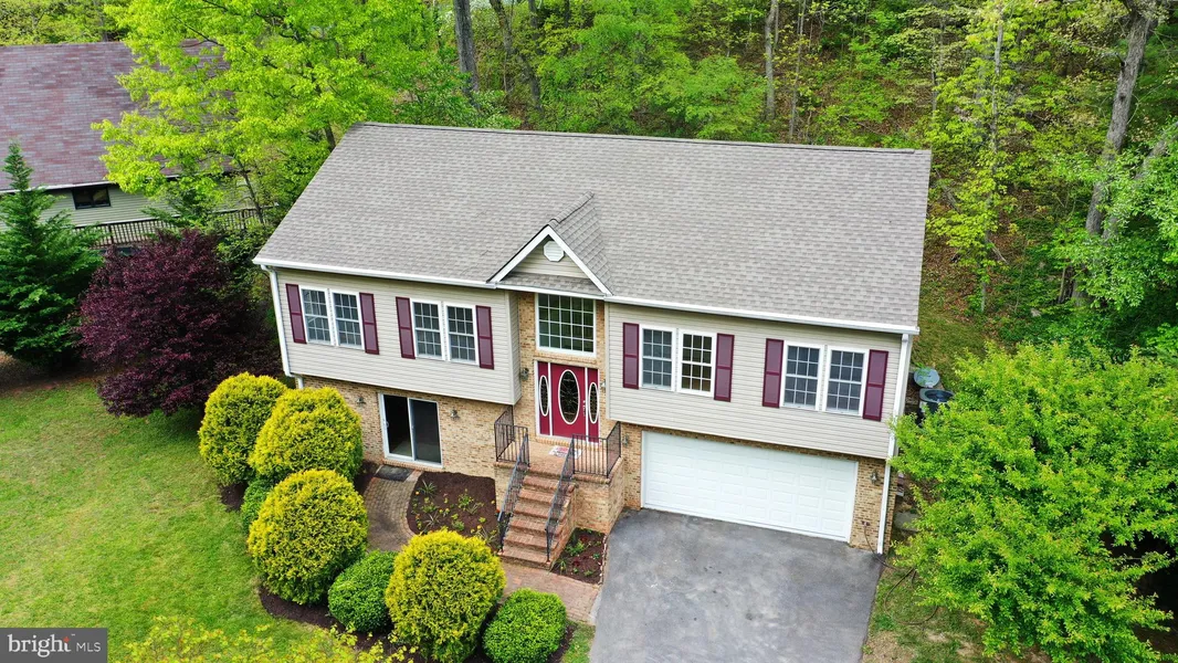 LIVE AT THE LAKE! BEAUTIFUL HOME IN A PEACEFUL, PARK-LIKE SETTING NEAR A STREAM. Elegant, spacious 4-bedroom, 3-bath contemporary split foyer with hardwood and laminate floors, ceramic tile, 9-foot+ ceilings, gas-log fireplace, jetted tub, upgraded trim and cabinets, ceiling fans and recessed lights. Vaulted ceilings in living room and kitchen/dining area. Tray ceiling in master bedroom. Plenty of storage. Rear deck 10x20. Two-car garage with storage area. Finished basement could be in-law suite. You can vacation where you live at Lake Holiday, a gated community with a deep-water lake, beaches, swimming, boating, fishing, water skiing, community center with exercise room, dog park, walking trails and more!