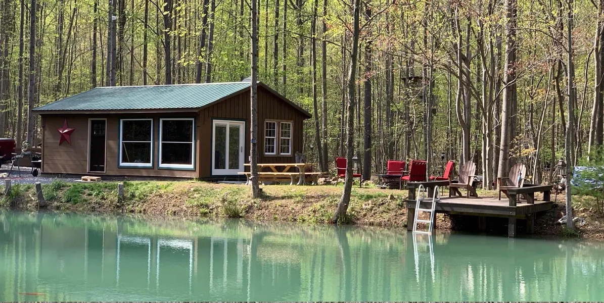Welcome to Camp Brady, located about ten miles west of Strasburg! Nestled in a private valley, you will find a 600-square-foot custom Amish cabin alongside a fully stocked spring-fed pond adjoining the George Washington National Forest. The cabin has one bedroom and one bathroom. The kitchen features knotty pine cabinets and ample counter space. The living room has floor-to-ceiling picture windows framing the water, shiplap walls, and ceilings. There is plenty of closet space for all of your gear and easy-to-maintain wood laminate flooring throughout. Solar power, composting toilet, refrigerator, microwave, propane wall heater, and a window A/C unit provide home comforts. Just outside, you’ll find the dock is the perfect location to enjoy a hot cup of coffee as the sun comes up or goes down. Enjoy the flowing waters of Duck Run, which makes its way through the property year-round. With n...