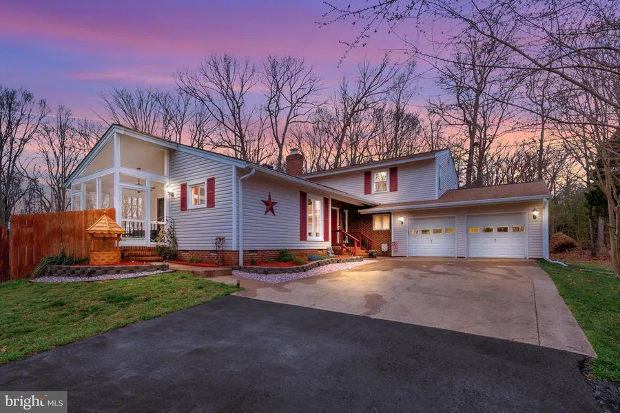 Welcome home to privacy at its best on 3 acres and NO HOA. Sellers have taken great care. Gleaming cherry hardwood floors greet you as you enter into the main level. Light filled open floor plan. Sunken living room with a double sided gas fireplace that opens on the other side to the family room. The kitchen has beautiful maple cabinets, granite countertops, wine fridge and stainless steel appliances. Gather in the spacious dining room opening up to the newly added screened in porch deck and side deck. Main level bedroom or could be used as an office with a full bath. Family room has built in book shelves and surround sound conveys. Upstairs holds the spacious master bedroom with 2 closets and a separate master bath with skylight. 2 more bedrooms and a full bath round out the upstairs. The unfinished basement is great for extra storage or endless possibilities for you to make it your own...
