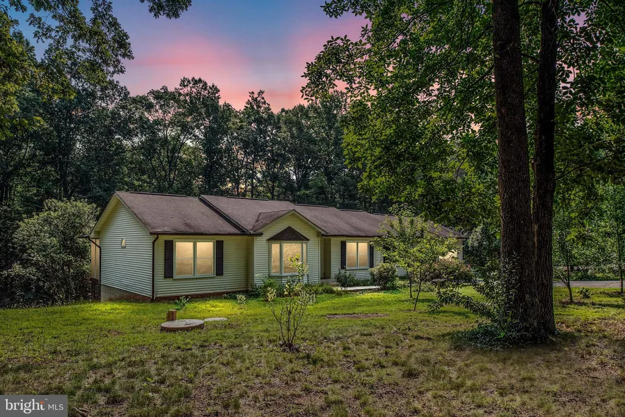 Spacious Rambler Nestled on just shy of 4 Private Acres! New Water Heater, Fresh Paint and New Carpet! The home offers an open floorplan, Granite Countertops and Stainless Appliances, a Screened Porch, and a partially finished basement with a Large Rec Room, Half Bath, and room to grow!
