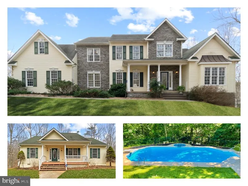 Custom Built Home includes Separate Detached Guest House, sitting nearly 200 feet above Abel Lake with long range views over the Kellogg Mill bridge to the widest area on the lake. 370' of waterfront with floating dock potential. Boating in Abel Lake is allowed, electric motor only. Kayaking, paddle boarding and canoeing are permitted and is an exceptional experience. Very private, quiet park-like setting. This tree-lined property features sanctuary and privacy from the hickory, oak, beech, tulip, mountain laurel, maple, holly trees and many, many others. Meandering streams with nooks/crannies to explore, rock outcroppings and wildlife are plentiful! Yet you are close to all of the local community amenities. The main house has an impressive open concept floor plan featuring a main level master bedroom and bathroom with double sided gas fireplace. New Appliances have been installed! The wall paper has been removed and the rooms painted. There is a 2nd master suite on the upper level along with two other bedrooms that share a Jack-and-Jill bathroom. These three large bedrooms on the upper level feature walk in closets. The delightful bonus room/loft gives you a grand view! Breathtaking view of the lake through the windows going up to the vaulted ceiling in the family room. Double-sided fireplace in the living room and kitchen. Gourmet kitchen with upgraded countertops, gorgeous glass front cabinets. French doors out to a sweeping deck overlooking the inground, connected spa/waterfall 20 x 40 Grecian style pool. Main house has a full walkout basement with nearly 2000 sq. feet, unfinished with rough-in plumbing. The spacious guest house has a rear entry garage, ramp access, two bedrooms and two bathrooms, an eat-in kitchen, living room with a gas fireplace, garage and charming deck with picturesque views! Easy access to shopping, grocery and fuel are within a 10 minute drive. The home is also located within 10 minutes of the Centerport Point Parkway or Courthouse Road I-95 interchange/Express Lanes. You can get to the VRE/Brooke Station and commuter lots within 15-20 minutes. Downtown Historic Fredericksburg and numerous Stafford Parks are also close by.
