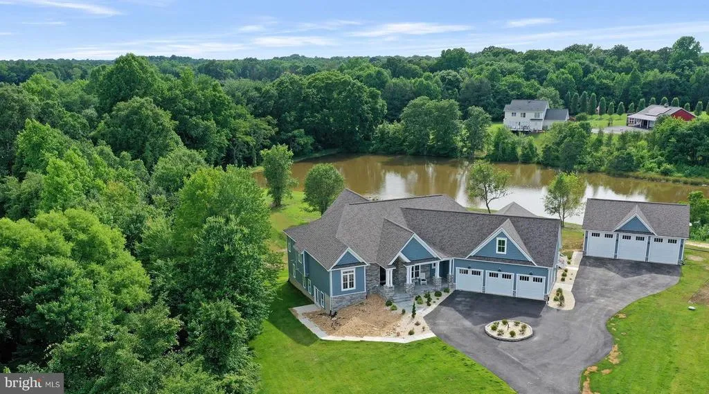 This gorgeous estate custom-built home is waiting for you to make it yours! Located on 4 acres, including a 2-acre private pond that has been on the property since the 1950's, with exquisite designs throughout, you won't want to leave. Enjoy relaxing on the extra-wide front porch, beautifully finished with slate and stone. Go inside and enjoy reading a book in the flawless living room with a coffered ceiling, built-in shelving, and large windows overlooking the property. The free-standing stone fireplace will be perfect for keeping you warm on chilly evenings. The stunning gourmet kitchen is a chef's dream, with the oversized island, top-of-the-line kitchen-aid appliances (including a trash compactor and ice-maker), detailed farmhouse sink, top-line quartz counters, and creamy white cabinets with pull-out shelving. The expansive primary suite is the perfect retreat with a trey ceiling, a...