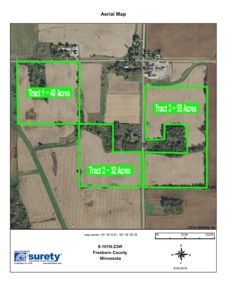 Terms: Tract 1 - $10,000, Tract 2 - $7,500, Tract 3 - $15,000 (nonrefundable) down the day of the sale. Balance due on or about October 20, 2016. 5% Buyers Fee will Apply. Any Statement made the day of the auction takes precedence over previous material. All information provided herein was obtained from sources deemed reliable, but neither the auction company nor seller guarantees its accuracy.