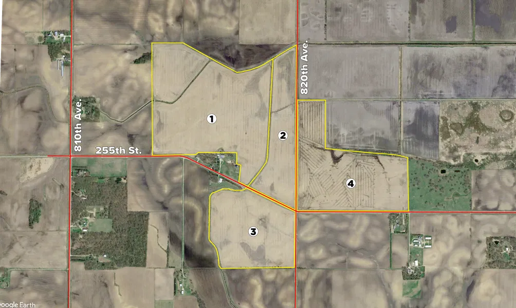 Tract 2: 55 +/- Acres of farmland. Primary soil type is Fieldon loam and the weighted average PI is approximately 74.5. Tract 2 has a 10 main tile and private tile outlets.