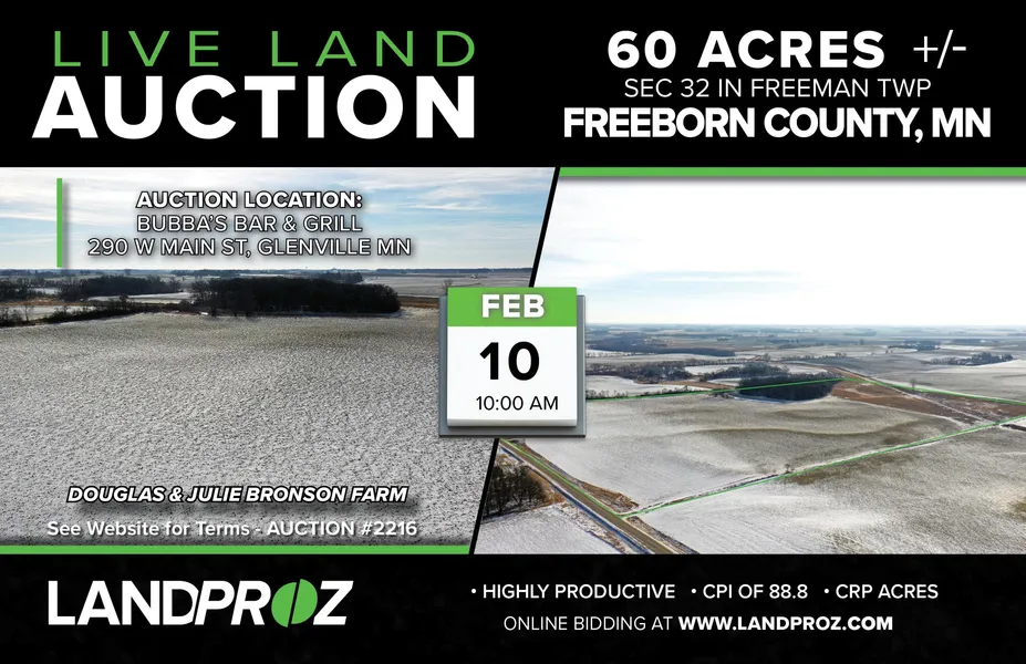 Please contact LandProz Broker/Auctioneer Greg Jensen 507-383-1067 for more information on this property.