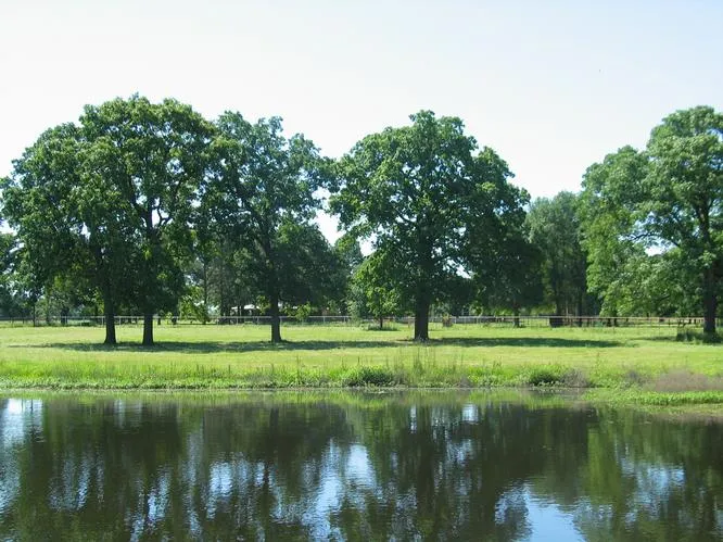 While sitting on the front porch or patio area you can enjoy the view of the spring fed lake and front pasture dotted with beautiful mature hardwood trees on this 20.086 acre country setting.