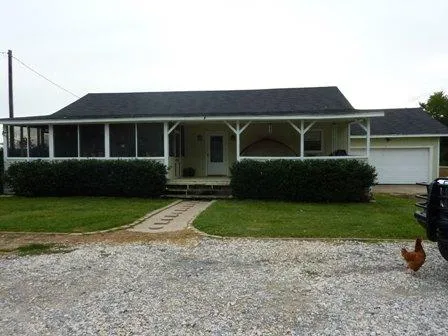 *Property Description: Located off FM 2570, this four bedroom, two bath home sits on three acres with a 12 stocked pond. The original house was built in 1990, and then in 1999 additional rooms were added. The spacious kitchen provides lots of space for feeding a large group of people and has an arched doorway to the sizeable living room. The master suite is separate from the other three bedrooms and has two walk-in closets. Off the kitchen is a nice size room that can be used as storage and has a convenient door leading to the garage. It also has washer and dryer hookups, even though there is another laundry room. Across the front of the house is a covered front porch plus a screened-in porch, and in back is an above ground pool with a deck. Also on the property is a barn as well as an equipment shed with three attached chicken coops. Both buildings have water and electricity.