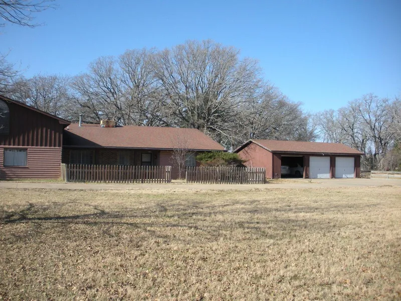Log house sits on 85 acres with lots of shared trees in the backyard, loft upstairs, open kitchen & living area with plenty of space. The property has 2 tanks, 30x48 barn with drive thru doors at both ends, large covered picnic area, Open land for grazing in front and wooded land towards the back of the property