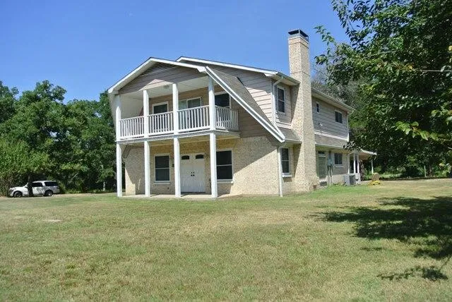 *Property Description: Are you challenged with finding a home that can comfortably accommodate a large family? Well, look no morethis is it! Cleverly thought out, this 5 bedroom, 2 bath home, is positioned on approximately 8.25 acres, about 5 minutes from the junior high & high schools. It has brick and siding exterior plus nice gutters and energy star windows. Upstairs, youll discover 4 large bedrooms and an oversized bath with lots of storage and double sinks. The master bedroom, located downstairs off the living room, gives access to the oversized patio which is under roof, providing lots of space for outdoor living and entertaining. The covered front porch features 8 square cedar support posts which continue upward to the roofline, providing banister supports for the newly redone upstairs balcony, conveniently serving 2 of the upstairs bedrooms.