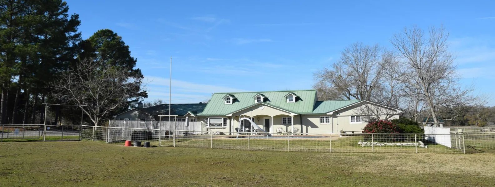 Equestrian Farm,2 homes,20+/- ac suitable for horses and/or cattle.Additional 15 adjoining acres available. Gated entry w pipe & horse wire fencing throughout the fenced & cross fenced coastal fields & paddocks.Halogen lighted pipe arena w roping box & running lanes,Lighted 125' round pen w announcers booth,4 horse hydraulic horse Walker,12 Paddocks 9 w cover & water,2 ponds,40 x 60 horse barn w 2 tack rooms & 12 x 14 stalls & breeder stalls w vet/wash bay area. Another 30 x 60 metal workshop w 2 bay roll up doors & entry door on concrete pad.Main home is custom built w large open living room,kitchen,& dining area,updated,including granite countertops,2 master suites,huge master closet w built-ins,massive master bath with cathedral ceiling.