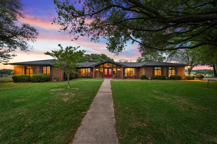 Texas ranch with a backyard oasis on 25+ acres! Travel down the winding driveway to this gorgeous brick home with 4 bedrooms, 2.1 baths & 2 spacious family rooms. The covered patio overlooks the pool and majestic oak trees. Just a few steps away, the 40' x 50' workshop with awning and a half bath provides an abundance of work space & storage. Open equipment barn is 60' x 50', with room to keep tractors, boats, RVs & other recreational vehicles out of the weather. Well-suited for livestock, there is a 20' x 20' stall area & run for horses or other animals. Fenced and cross-fenced, there are 2 ponds stocked with catfish and bass on property. A supplemental water well is used to irrigate yard and is piped to both stocked ponds for continuous water supply, while community water facilitates the home. This place is the full package. Enjoy the country living and stay close to the amenities of t...