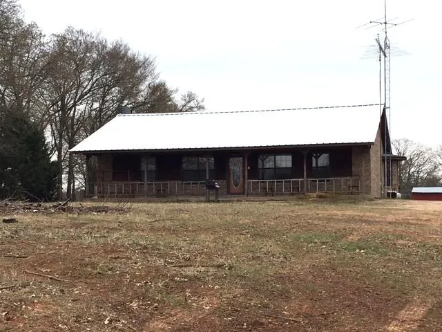 *On a majestic hill dotted with huge Oak trees, you'll find this lovely brick home on approx. 10 acres. The front porch extends the length of the house--wonderful for enjoying quiet evenings. The kitchen with new upper cabinets is open to the dining area with bay window, and the washer/dryer connections are convenient to this area in a large utility closet. Built in bookshelves flank the wood burning brick fireplace in the living room which has two ceiling fans and carpeting. A relaxing air flow tub is in the master bath, and the bedroom has a walk-in closet. The second bedroom is nearby and also has a walk-in closet. The third bedroom, which in on the opposite side of the h...