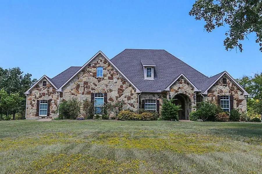 *Property Description: Through a gated entrance and several park like acres, the washed rock driveway leads you to this elegant custom brick/stone home featuring an open living concept and split floor plan, amenities include beautiful knotty alder cabinets with granite counters and stainless steel appliances in the kitchen, crown & shoe molding, and recessed lighting. The kitchen has a two sided, multi-functional breakfast bar separating the kitchen from the living room with fireplace and sunny breakfast nook with a bay window view of the backyard. The front door is a special order, unique ached door surrounded by transom windows. The foyer is open to both the living room a...