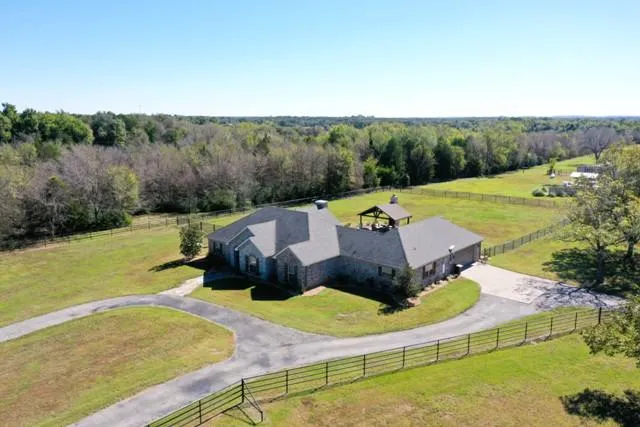 Automatic Gate to Approx 6 acres pipe perimeter & cross fenced, Gorgeous 3 bed, 3 bath, 2 car garage, exterior is a combination of brick & stone with stunning double glass doors leading to a large living room with high vaulted ceiling & stone gas log fireplace as the focal point. BIG Island Kitchen with gas cooktop, granite countertops, pantry & two sinks with table area nearby. Split bedrms for nice privacy, primary bdrm with en suite bath, luxurious jetted tub, separate custom shower, walk in closet. Bedrooms 2 & 3 share a hall bath with newly renovated shower with glass door. Huge laundry room with sink, 2nd pantry closet, & built-in cabinets, 3rd bathroom with shower stall is near the laundry rm. Outside, you...