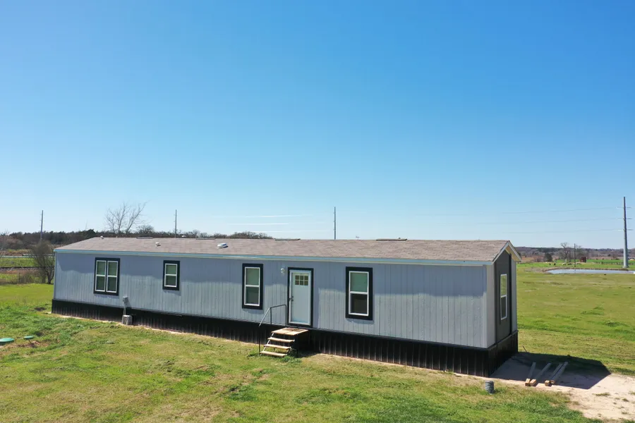 Practically Brand New 16 x 76 Jessup Manufactured Home on 8.066 Acres! The land is cleared and level with a nice pond at the back, fenced on 3 sides with a front entry gate. There's lots of space to add a shop, barn, roping arena---anything that you need! AND Ag Exemption is already in place. The home features an open concept with split bedrooms. Primary with ensuite bath, soaking tub, separate shower, dual sinks, & walk-in closet. Kitchen amenities include a breakfast bar, Stainless Steel Apron Sink, lots of cabinets, & a smooth top electric range. Never used electric fireplace with TV above is the focal point of the living room. Energy savers such as storm windows & storm front door add to your comfort. Inviting rural area with rolling hills & centrally located between all major TX cities, just on the outskirts of Fairfield. Aerobic septic, Pleasant Grove Water.