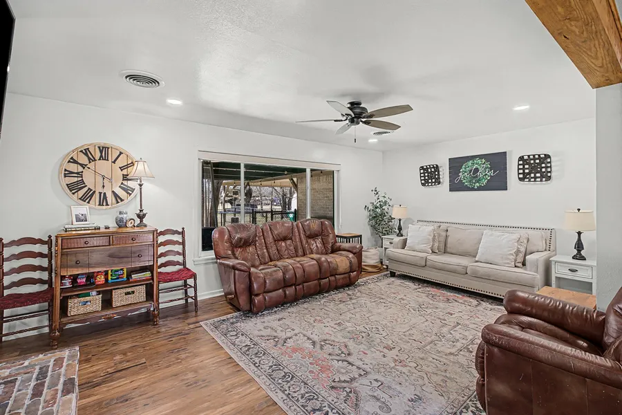 Welcome to this beautifully renovated single-story brick home, offering approximately 2,200+ sq ft 3-3. The heart of the home is the expansive open-concept kitchen, living, and dining area. The kitchen features granite countertops, a large island, white shaker cabinets, a farmhouse sink, and a view straight into the living space with its striking brick fireplace. Adjacent dining includes a cozy built-in bench window sea Additional bedrooms are perfect for additional or extended family, or a nursery-ready space. The den showcases office character and style. Updated bathrooms throughout. . Fenced backyard with a covered patio featuring an outdoor kitchen-bar, seating area, fire pit, swing set, trampoline area, and room for a pool, garden, or whatever your heart desires. The driveway and carport provide ample parking. Priced to sell – schedule your private showing today!