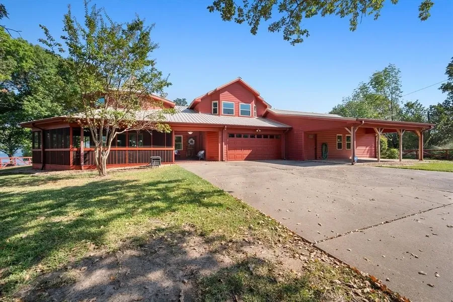 Discover your perfect lake house getaway on a quit cul-de-sac on the Southside of beautiful Richland Chambers Lake! This charming 5-bedroom, 3-bath retreat boasts a unique round living room , ideal for cozy gatherings, and two inviting fireplaces in the living and dining areas, perfect for chilly evenings. A large sunroom floods the space with natural light and offers stunning lake views, making it a serene spot to unwind. The attached guest house features a full kitchen, providing privacy and convenience for visitors. Enjoy outdoor living on the covered patio with a pizza oven, ideal for entertaining or relaxing by the fire pit. The property also includes a covered 2-stall boathouse, ensuring easy access to water activities and adventures. This lake house beautifully combines comfort and charm. It sits up high with amazing lake and sunset views making it the ultimate peaceful escape. Th...