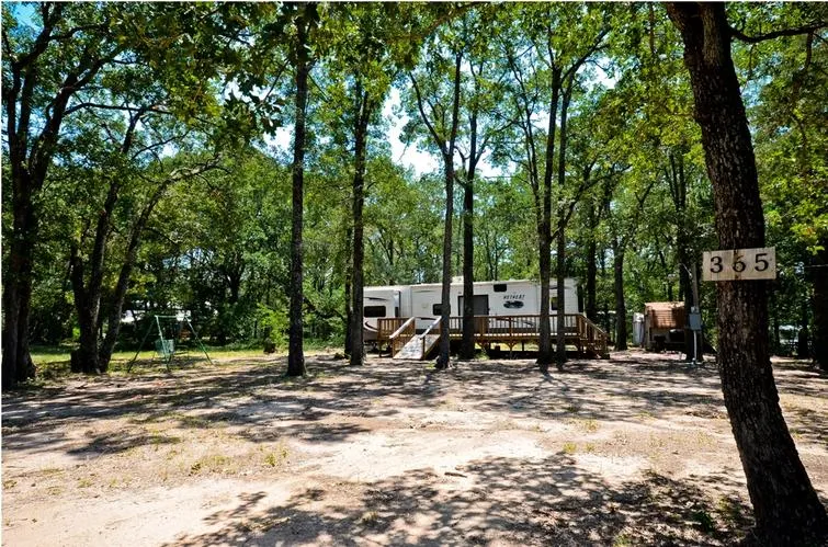Great weekend get-a-way! This lot has wonderful trees, is within walking distance to lake and includes the RV - a 2010 Keystone Retreat 39KBTS. 40' 11" length, 8' 6" width, 12' 7" height with 3 slides. 2 bedrooms - Master has king bed and bay window, Queen couch air bed in living & sliding glass door, queen couch air bed in 2nd living/bedroom area. Also twin bunk above couch in 2nd living, night shades & full bath with stand up shower & half bath in second living/bedroom. Freestanding dinette with 4 chairs & bar eating area with 2 barstools. Full size refrigerator in kitchen, microwave & stove. 1 flat screen TV mounted in living, one TV in second living/bedroom, surround sound inside & dual exterior speakers, Electric fireplace, recessed ceiling can lighting, large pantry, deck with 21' awning, ceiling fan in master & 2 storage buildings and second patio Property owners have full use of the boat ramp, swimming pool and club house.