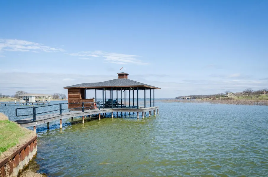 Beautiful 1.055 acre waterfront lot with boat house and RV ready! Gently sloped lot located in the gated subdivision of South Point with plenty of room to spread out and build your dream home. Boathouse with single boat lift, double jet ski lift, storage closet and electric & water. Approx. 110 feet of water frontage with steel retaining wall, 30amp RV power & water in two locations for long weekends, up to two weeks per deed restrictions. South Point is deed restricted to site built homes with no time limit to build. It has underground utilities, a central water system and paved roads. Private, resort-style pool with gazebo, boat ramp and pier for owners enjoyment. No signs allowed on lots.