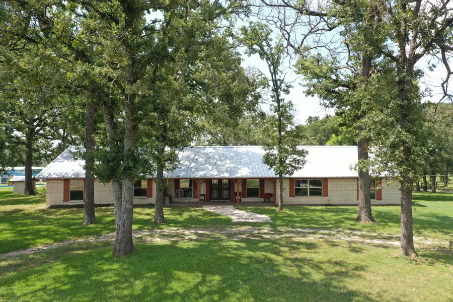 Just 8 miles from I-45! Country Oasis 90 minutes south of Dallas! You'll wish for nothing except for more leisure time to enjoy this impressive Ranch home on approx.. 45.49 acres with Pool & Outdoor Kitchen. Fenced & Cross Fenced, gorgeous sunsets over hay meadows paired perfectly with clusters of woods & 2 ponds. The owners have put their hearts into remodeling their home with warm colors & magnificent features: Cascading waterfall in the double shower, clawfoot tub, and a meticulously organized closet complete with chandelier in the master suite. Expansive wrap around granite bar separating the kitchen, dining, and living rm with cathedral clg & fireplace. A second fireplace makes for a cozy den or office. Bedrooms 2 & 3 with walk-in closets; Massive laundry rm with sink, closet storage & half bath. Pool, pool bath, & gazebo with outdoor kitchen. 25 X 40 Shop, horse barn with electricity & tack room on slab; Pro dog kennel on slab with water, electricity, & septic. RV hookup. You'll have it all!