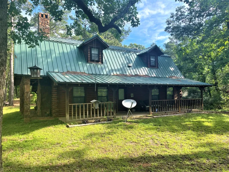 #74 Oakwood-3/2 Log Home with Balcony, 2,080 sq.ft. per FCAD, built in 2002 per FCAD, Guest Cabin, Shop, +/-25.721 Acres, Rolling Hills, Pine Trees, 261 FCR 241, Oakwood. You CAN have it all! Log House, Guest Cottage, & Shop on Appx 25.721 acres of Rolling Pine covered hills reminiscent of the Piney Woods of deep east TX. Secluded & an actual respite from road noise leaving you free to enjoy the sounds of nature, yet conveniently only 30 minutes from Palestine. One of a kind log home ready for your next fun weekend, cedar pine breakfast bar, stained glass accents, custom cedar staircase, & cozy rock fireplace. Kitchen & living rm are open, large pantry & laundry rm for easy living, primary bdrm down, tub & sep shower, walk-in closet, dual sink vanities. Upstairs is one large room that comfortably sleeps nine, bathroom has huge double sink vanity, tub & shower combo with unique fossil inlaid in the tile surround. Great view from Balcony. Shop on slab for parking your ATVs and other equipment. Guest cottage with kitchenette. Explore the trails and gather around the fire pit for smores. Youll never be bored here!