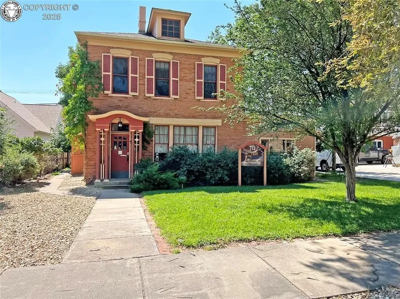 Step into your next business venture with this beautifully restored two-story brick building in the heart of downtown Canon City. Formerly home to a thriving medical practice since 1993, this 2,435 sq. ft. property offers exceptional visibility, flexible layout options, and classic historic charm. The striking brick facade, restored to its original glory, features tall windows with decorative wood trim, a welcoming gabled portico with arched accents, and mature landscaping that enhances its curb appeal. Inside, the 5'11" x 17'7" entry showcases hardwood flooring and flows into a spacious 14'11" x 15' waiting room with French doors and a reception window to the 14'8" x 11'3" reception office, ideal for greeting clients or patients. The main floor includes three private rooms, each with a sink, perfect for exam spaces or easily converted into individual offices, plus two half-baths for staff and public use. A staff kitchen and break room on the east side doubles as a versatile office space, with access to additional storage and a 4'11" x 9'8" patio. Upstairs, you'll find four bright rooms and a full bathroom with a claw foot tub, offering plenty of space for team members or conference use. The property also features a 3-car garage with alley access, additional off-street parking, and is zoned Central Business District (CB)-allowing for a wide range of commercial uses, with potential for multi-family conversion pending city approval for a special review use. Whether you're envisioning a professional office, boutique practice, or creative studio, this downtown landmark offers the perfect blend of historic elegance and modern functionality.