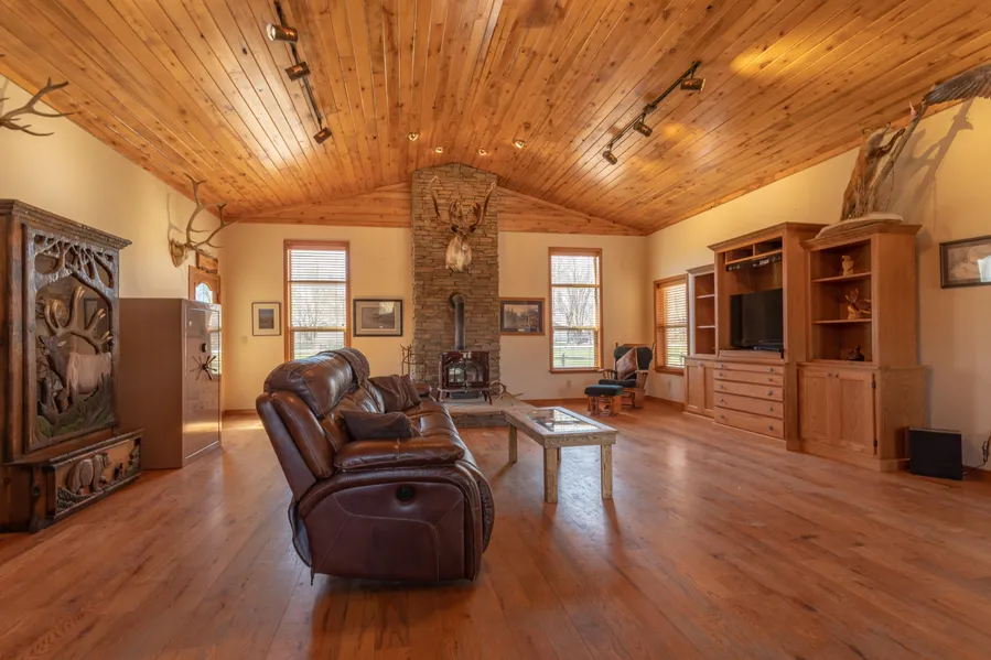 The home is 2,459 square feet with three (3) bedrooms and three (3) baths, forced air heating and Central AC, built in 2003. The house is nicely finished with wood ascents creating a mountain hunting lodge atmosphere. Additional structures include a 30' x 30 three (3) stall barn with power and electric, and a 30' x 56' shop with power, heat, and more. Pipe corrals and pens perfect for horses or cattle.
