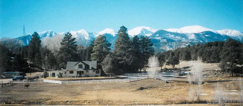 Beautiful and serene is the setting for this lovely, restored Sears home on 6.3 acres with a backdrop of the Sangre de Cristo Mountains. Imagine a picturesque home nestled among large Ponderosa pines and cottonwoods. The screened porch, spanning the entire front of the home and the smaller side porch are ideal for early morning or late day relaxation. Envision lush pastureland overlooking several large ponds fed by Cottonwood Creek as it meanders close by. Bring your animals. Theyll love it. Perfect location for a large family or a bed and breakfast retreat.
