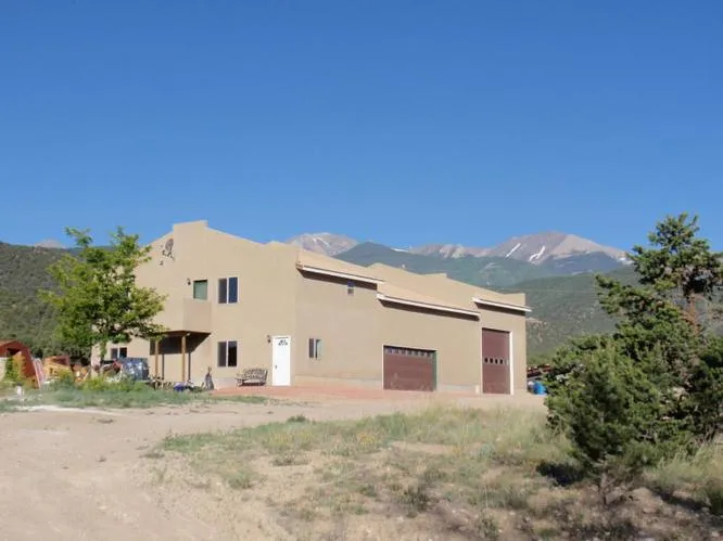 Need a mega garage? How about one that is 54 ft. by 40 ft. and 16 ft. tall inside. This 2-story home, built in 2008, is 1440 SF with the main level currently finished and the upper level to be finished shortly, as it is already drywalled. 2 bedrooms, 1.75 baths. Propane forced air heating; Septic system; carpet and vinyl flooring. The 13.79 acres has a domestic well which allows you to water up to one acre of lawn and garden, plus animals. It is a great horse property as well. You will never tire of the panoramic views of the Sangre de Cristo Mountains and more.