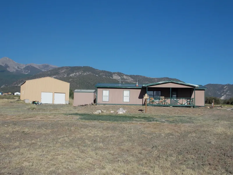 The huge 30x35 garage on this property is every mans dream. It is wired for 220 amp service and has two RV sized garage doors. The home is very reasonably priced and has been lovingly care for, freshly painted, and new carpet. You can sit on the back deck and view the ever changing Sangre de Cristo Mountains up close. The home is in the Upper Arkansas Water Conservancy District, so the good producing well can be augmented to allow for lawn and garden and a couple of horses.