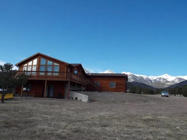 This beautiful redwood sided home, situated on 6.71 acres at the end of a cul-de-sac, and overlooks the Arkansas River and the valley it flows through. There are also 360 degree mountain views in all directions including the Sangre De Cristo Mtn. Range. The 1834 sq. ft. on the main level and 1,284 sq. ft. finished on the walkout lower level includes 5 bedrooms, 3 bathrooms, large great room and kitchen, and a huge recreation room which encompasses a large pool table space, wet bar and entertainment area. Natural hickory cabinets and plenty of counter space are a big bonus as well. There is also 550 sq. ft. of unfinished lower level, to store all your stuff. Another bonus is the 3+ car attached garage that is totally finished and has a high efficiency Reznor overhead furnace and epoxy finished floor. Super insulation plus central air conditioning will keep you cool on the warmest days. Entertaining in all kinds of weather will be a joy with the large wraparound deck, spacious great room and huge rec room.