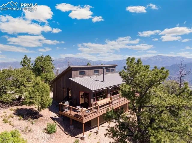 Welcome to a charming cabin nestled on a sprawling 36-acre parcel of land in the picturesque town of Howard, Colorado. This cozy retreat boasts two comfortable bedrooms & a well-appointed bathroom, making it a perfect mountain getaway or a tranquil year-round residence. As you step onto the composite wrap-around deck, the beauty of the surrounding landscape unfolds before your eyes. Majestic mountains encircle the property, providing awe-inspiring views in every direction. Imagine waking up to stunning sunrises, enjoying peaceful afternoons on the deck, & relishing unforgettable sunsets that paint the sky with vibrant hues. The cabin's interior exudes rustic charm & warmth. Natural wood finishes create a cozy ambiance, while large windows invite abundant natural light, allowing you to immerse yourself in the beauty of the outdoors from the comfort of your home. The open living area seamlessly connects the living room, dining area, and kitchen, providing a spacious & inviting atmosphere. The kitchen features a gas stove and large island, making it a joy to prepare delicious meals for friends and family. The adjoining dining area offers a picturesque spot to savor your culinary creations while enjoying panoramic views of the surrounding mountains. Both bedrooms provide comfortable retreats, each offering a peaceful sanctuary to rest and rejuvenate. The 3/4 bathroom is well-appointed for all your needs. One of the standout features of this property is its solar power system, ensuring sustainable & eco-friendly living. Harnessing the abundant sunlight, this off-grid capability allows you to enjoy modern comforts while minimizing your environmental impact. The vast 36 acres surrounding the cabin offers endless possibilities for outdoor lovers. It is approximately 40 mins to Canon City & Salida. Short term rentals allowed with HOA approval.