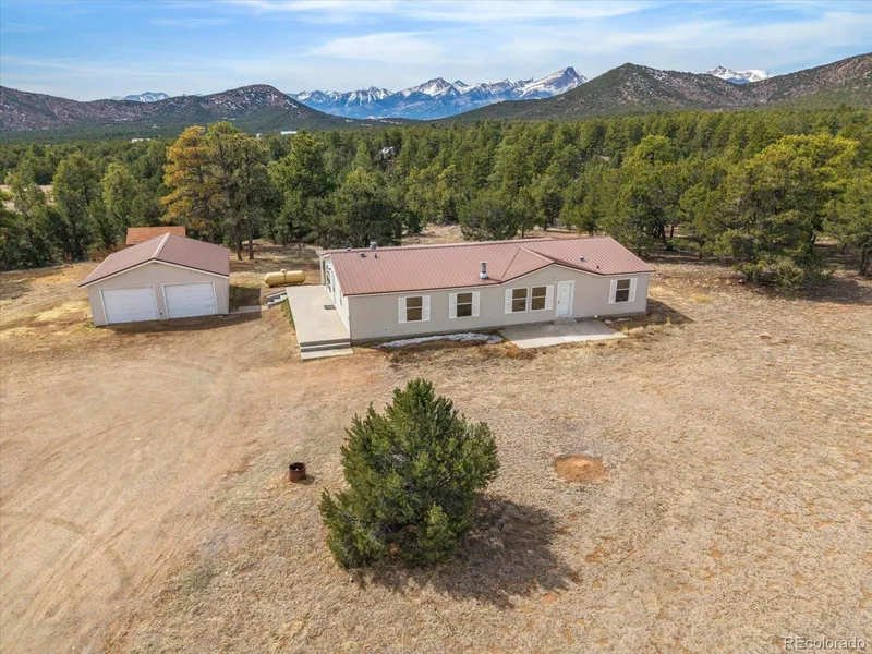 This spacious home offers 1,736 square feet of comfortable living space and sits on a picturesque 8.93-acre lot, partially treed with a beautiful meadow area. Over six acres is fenced, providing both privacy and space to enjoy the outdoors. Inside, you'll find 4 bedrooms, including a luxurious primary suite with two walk-in closets and a private bath featuring a garden tub and separate shower. With two full baths total, this home is ideal for family living or hosting guests. The living area boasts a cozy wood-burning free-standing stove, perfect for chilly nights, while large windows frame breathtaking views of the Sangre de Cristo Mountains. Outside, the property includes a chicken coop, storage shed, and a heated 2-car detached garage which offers ample room for all of your outdoor toys and equipment. Conveniently located just 25 minutes from Deweese Reservoir and 21 minutes to the town of Westcliffe, you'll enjoy the peace and serenity of rural life with easy access to nearby amenities. Plus, theres no HOA, so you have the freedom to truly make this property your own. With its metal roofs, charming rural setting, and unbeatable mountain vistas, this home is a must-see! Schedule your showing today!