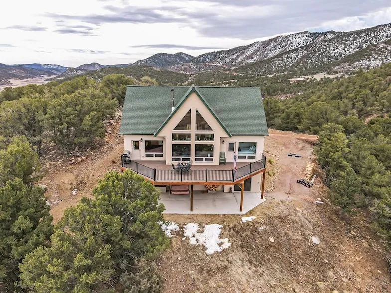 This custom-built home offers an idyllic retreat with the year-round Currant Creek meandering through the property, inviting you to cast your fly into one of the numerous ponds or observe the playful beavers. The home exudes elegance featuring solid hickory doors, a kitchen with solid hickory cabinets, porcelain floors, stainless steel appliances and solid surface counters. Enjoy year-round comfort with heat/AC, along with a wood-burning stove. The master bedroom is a sanctuary with 360-degree views, walk-in closet, and a luxurious bathroom boasting a soaking tub and walk-in shower. Additional accommodations include a 2nd main-floor bedroom and a third bedroom upstairs. The loft space can serve as a separate living area, office, or rec room. The heated partially finished walk-out basement offers limitless possibilities, featuring a giant laundry room with a large pantry closet that could easily double as a fourth bedroom, and a convenient 3/4 bathroom. Outside, the expansive Trex Deck and concrete patio provide a perfect place to admire the surrounding mountains, with propane hookups facilitating effortless outdoor cooking. The home is equipped with wiring for a generator. The detached 32x32 garage offers ample space for vehicles and storage, complete with solar power. The well report shows 10 GPM! Located in GMU 58 for excellent hunting, 20 minutes to town, 15 minutes to world class fishing, 1.5 hours to Breckenridge or Monarch. Super private and quiet but close to town!