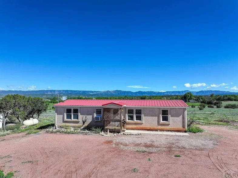 Ranch-style home situated at the end of a peaceful cul-de-sac on 10 acres, offering expansive mountain views including a glimpse of Pikes Peak's summit to the north. A circular driveway provides easy access with ample space for RV or trailer parking. Enjoy newer carpeting throughout and mountain views from multiple rooms. The laundry room, located off the kitchen, offers its own exterior access for convenience. Step out from the living room onto a wood deck that showcases the open vistas, perfect for taking in Colorado's natural beauty. The property features a storage shed and tack shed, ideal for equipment or hobby needs, along with partial fencing accommodating privacy while maintaining open space with local trees and scrub brush. The exterior's stucco finish adds low-maintenance appeal. For outdoor enthusiasts, Brush Hollow Reservoir and Dakota Hot Springs lie just minutes away, while...
