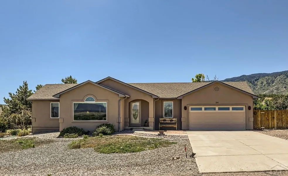 Welcome to this meticulously maintained ranch-style home nestled in the sought-after Dawson Ranch community. Perched on a spacious beautifully landscaped lot this immaculate residence offers stunning views of Pikes Peak and the surrounding natural beauty. The open floor plan is perfect for both relaxing and entertaining. The large living room boasts a heating gas fireplace with battery backup and picture window perfectly framing the majestic mountain views. The kitchen features beautiful cabinetry, ample storage and a convenient breakfast bar seamlessly flowing into the dining area and into the bright spacious sunroom. Surrounded by Pella glass windows and sliding glass doors the sunroom offers a tranquil retreat with access to a lush backyard oasis with mature trees, a serene water feature and ultimate privacy. The main level showcases a generously sized primary suite with picturesque v...