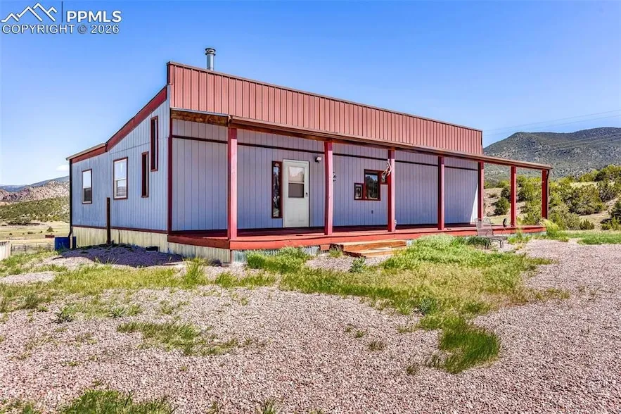 Experience your own private Colorado sanctuary just 12 miles from Canon City. Set on more than 36 pristine acres, this 1,120 SF frame 2017 built home offers sweeping panoramic views, unforgettable sunsets, and abundant wildlife best enjoyed from the inviting front porch or expansive deck. The heart of the home is the beautifully updated kitchen featuring elegant Hampton Bay cabinetry, stainless steel appliances, a garbage disposal, an on demand hot water heater, and updated flooring. An impressive living room addition showcases vaulted ceilings finished in tongue and groove Blue Beetle Kill Pine, filling the space with warmth and character. Large windows and a sliding glass door flood the room with natural light and provide access to the 300 plus SF deck, perfect for entertaining or quiet evenings outdoors. The spacious 22x16 bedroom offers direct deck access and a generous 4x12 walk in ...