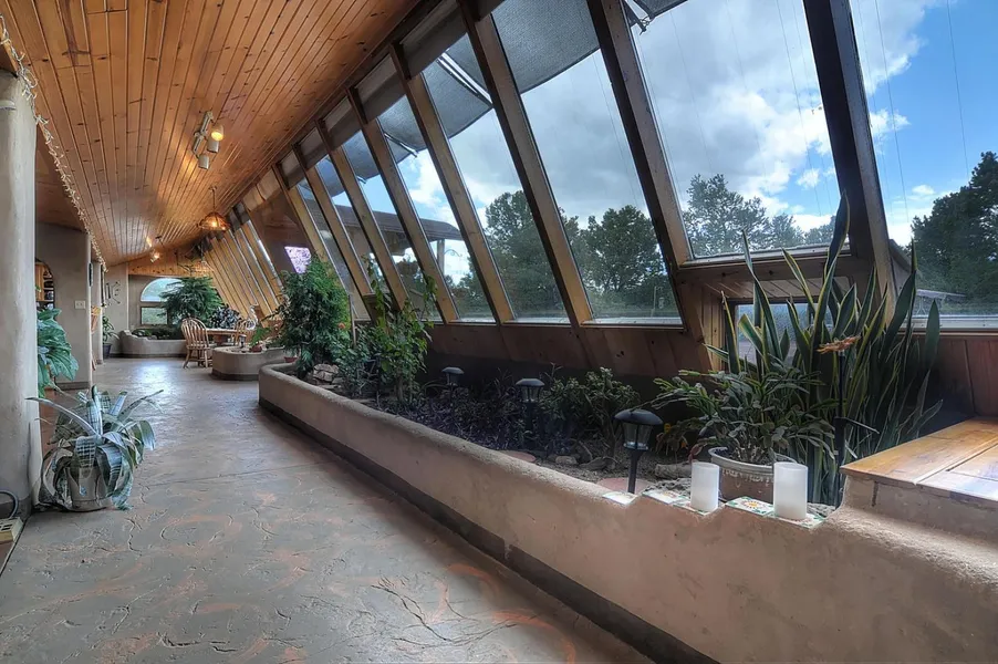 Beautiful Southwest style Earth Ship on 35 plus heavily treed acres. Gorgeous property with incredible mountain views. Private and secluded but just off a county road. 3 bedrooms, 2 baths, open kitchen, dining, living. Home is like living outside from inside, this is a one of a kind home built with reinforced concrete, earth bricks for solar mass and totally off grid. 2 Kiva fireplaces, domestic well and an attached 3 car garage. Beautiful home, land and truly special for special buyers.