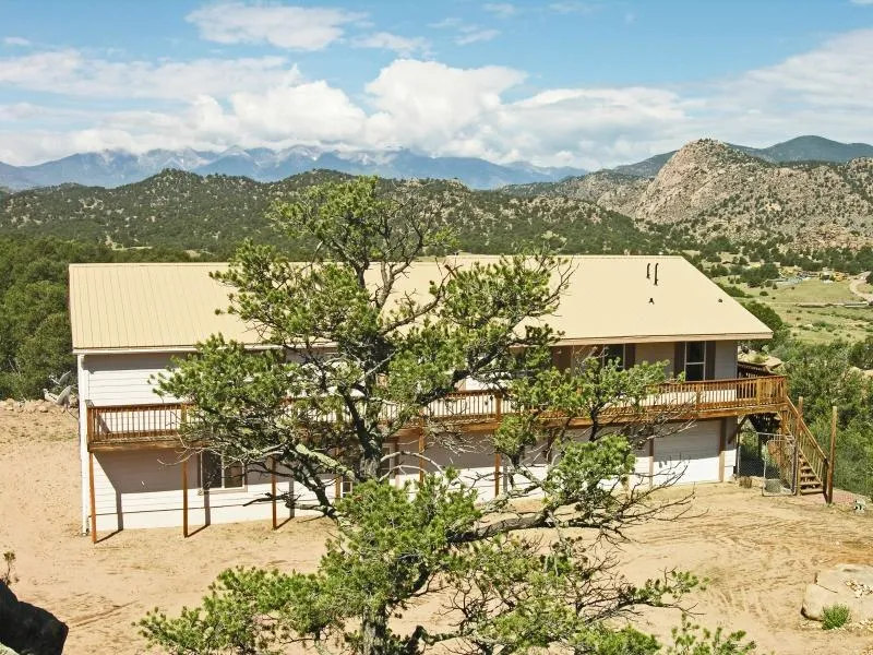 This 35-acre property borders the Arkansas River, includes an island, and borders US Hwy 50. Property on the west side is commercially zoned. Property on the south borders public lands. The 3360 SF home has a huge wrap around deck where you can view the river and the wildlife. Main level of 2040 SF features an open floor plan that allows the wood stove to heat the entire area. The kitchen has a center island and an abundance of cabinets and work space. Master suite accesses the deck and has a large, enviable walk-in closet, while the master bath has a garden tub, shower, and double sinks. There are an additional 2 bedrooms and 1.5 baths on this level, as well as an office and laundry. The finished basement is 1320 SF with a bedroom and bath on one end and double car garage on the other. Wander the multiple hiking paths thru rock outcroppings ending at developed tent sites (not commercially zoned). The deck boasts a hot tub with uninhibited views by day or night. Spacious home, expansive acreage, Arkansas River frontage, adjoins public land offering nearly unlimited recreational opportunities.