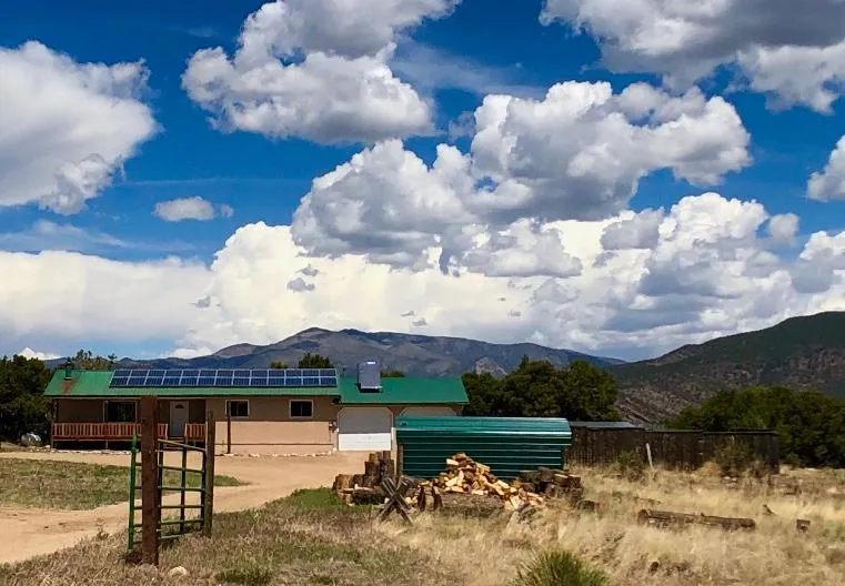 MLS #8448990 - Take in the views of the Sangre de Cristo mountain range while sipping a warm cup of coffee from the front porch of this warm and cozy ranch style home. This 3 bedroom, 1.5 bath home has Bamboo flooring in the living, dining and entryway. A free-standing wood stove is located in the living room to keep you warm on those cool nights. Escape the direct sunshine on your covered front porch as you gaze at the surrounding beauty. Cool yourself down with a glass of double filtered water acquired from the refrigerator ice and water dispenser. Enjoy direct sunlight from the back porch which has trees that act as a natural screen from the elements. Pick an apple or a plum from the fruit trees in the sideyard. Enjoy the soft spoken stream that runs through the northern portion of the property from the back deck or be lulled to sleep from your bedroom window by the gentle sounds of t...