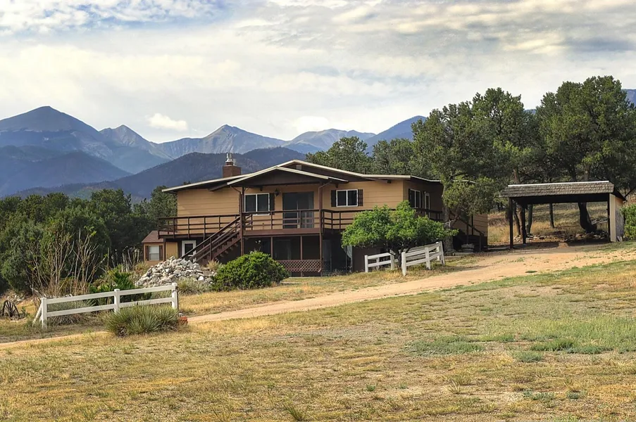 This is a 3 bedroom, 3 bath, 2300 square foot home surrounded by 14,000 foot mountains. Lots of gorgeous hickory wood cabinets in extra-large kitchen. Living room with brick gas fireplace with insert and blower. Sunroom has windows all along east wall to overlook the small mountain town of Coaldale and allow for passive solar heating. Master bedroom has a walk-in closet off the master bath. Laundry room with deep sink. Large den has a rustic, free-standing gas stove. You can walk out from the lower level through 2 sets of sliding glass doors. Large storage room downstairs, along with an attached Workshop. Behind the house is an 8x12 storage building with electricity. This property consists of 14.96 acres. Ready for horses, livestock or your toys. The 36x48 insulated barn is open and ready to be filled, it has water and electricity with another 12x20 hay barn/storage shed nearby. Just outside the barn door is a 100x120 arena. The views are beautiful from your wrap around second story deck. Enjoy your morning coffee and breakfast from the front deck watching the sun rise and then BBQ from the back deck in the evenings with an available propane hook up. Lounge around below on the 2 concrete patios at any time. Kitchen Cabinets, Windows, Wood Flooring, and Metal roof have been installed recently. Look for Elk, Moose, Mule Deer, Big Horn Sheep, White Mountain Goat, Antelope, Bear, Mountain Lion, Lynx, Bobcat, Turkey, Bald Eagle, Brown Eagle, Fox and more who travel through the pasture and around the house frequently.