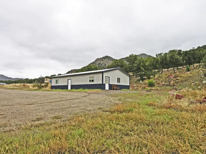 There is a 1300 SF structure with a kitchen, full bath, good sized garage, and permitted well. In addition, there is also an RV/building site on the hill behind the structure. This property could easily fit any number of needs. It could be made a shop, residence by adding a bedroom, or commercial building with a special use permit.