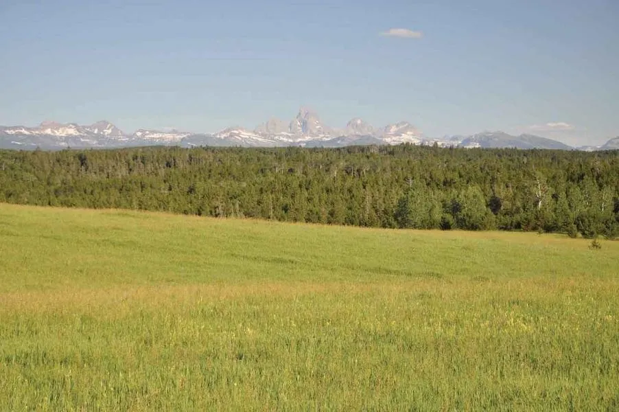 ~ Expansive full range view of the majestic Teton Mountain Range overlooking the ranchs rolling meadows.