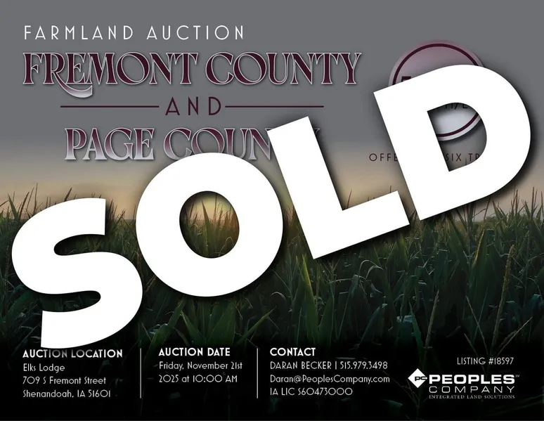 Major Fremont & Page County, IA Land Auction! Peoples Company is honored to represent the McLaren Family in the sale of 582.9 surveyed acres m/l of high-quality tillable farmland located just north of Shenandoah, Iowa in Fremont & Page County. The farm will be offered in six individual tracts, consisting of five tracts with high-quality tillable acres in addition to a large acreage with a well-kept house and multiple outbuildings. These tracts will be sold via Public Auction on November 21st, 2025 at the Elks Lodge in Shenandoah, IA at 10 A.M (CST).